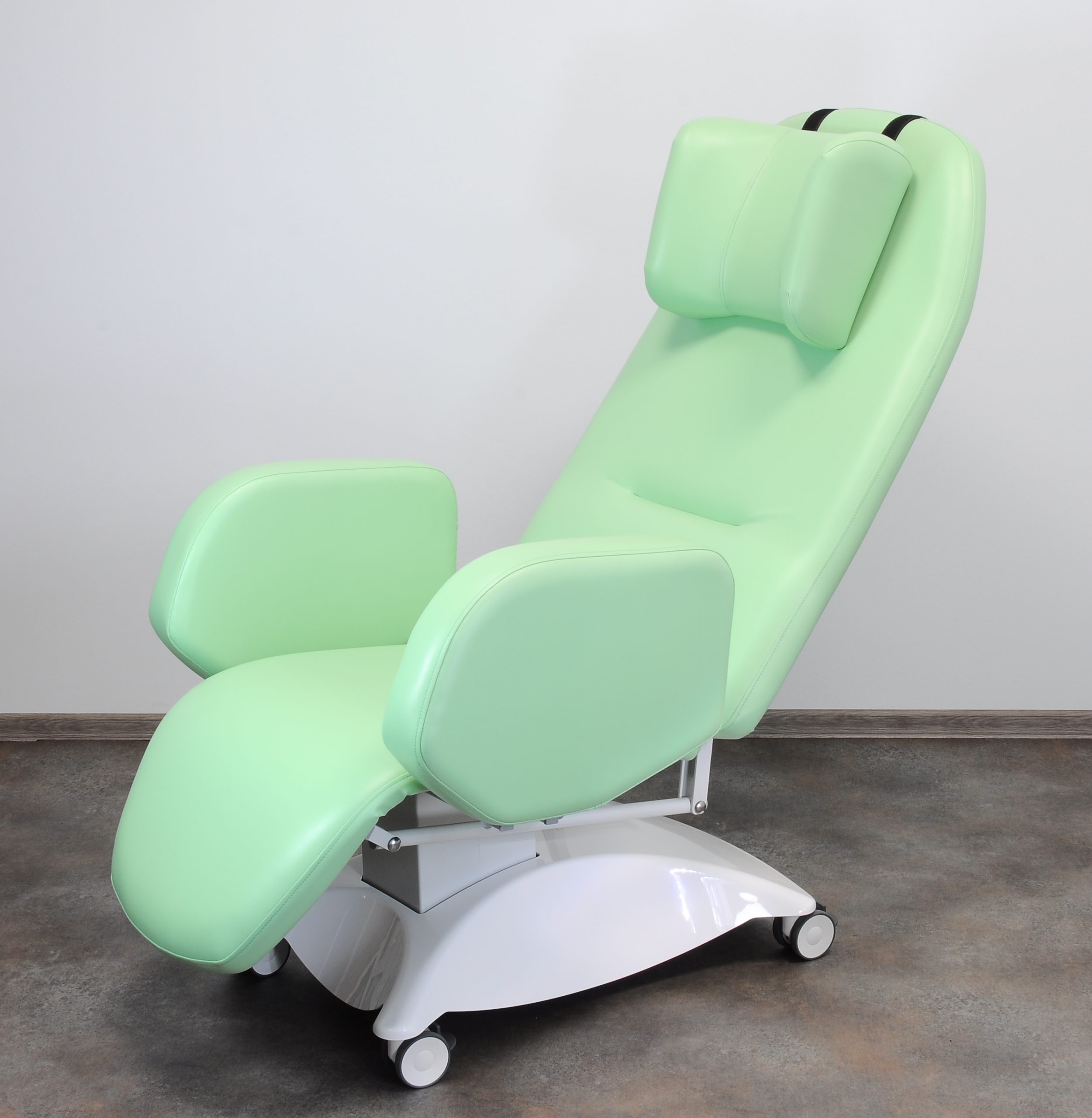 Vrlo udobna stolica s mekom presvlakom i masivni nasloni za ruke koja pacijentu olakšavaju ustajanje.